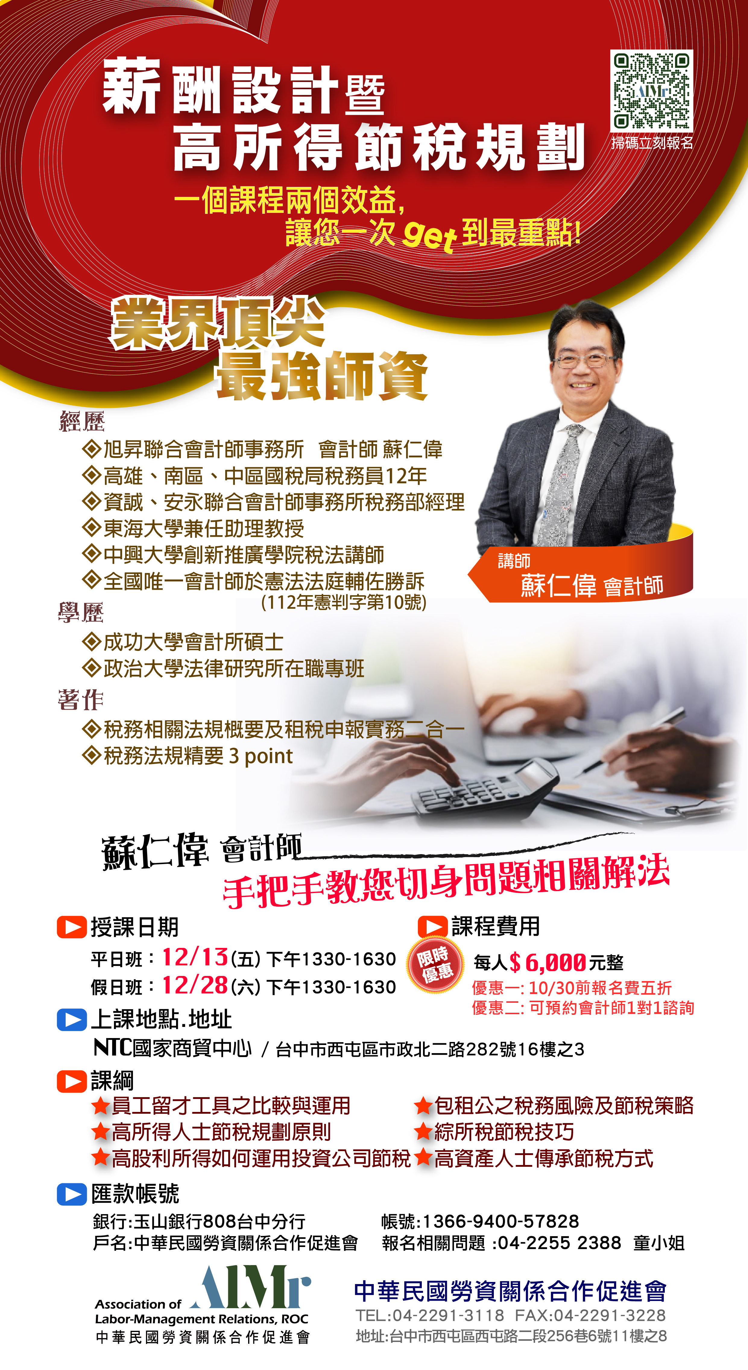 報名即享優惠一: 10/30前報名費五折